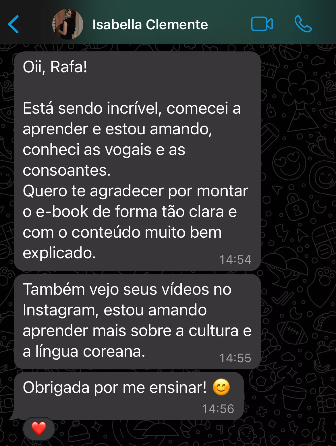 Obrigada por me ajudar a estudar coreano! De todos os professores que eu já tive, você é a melhor!