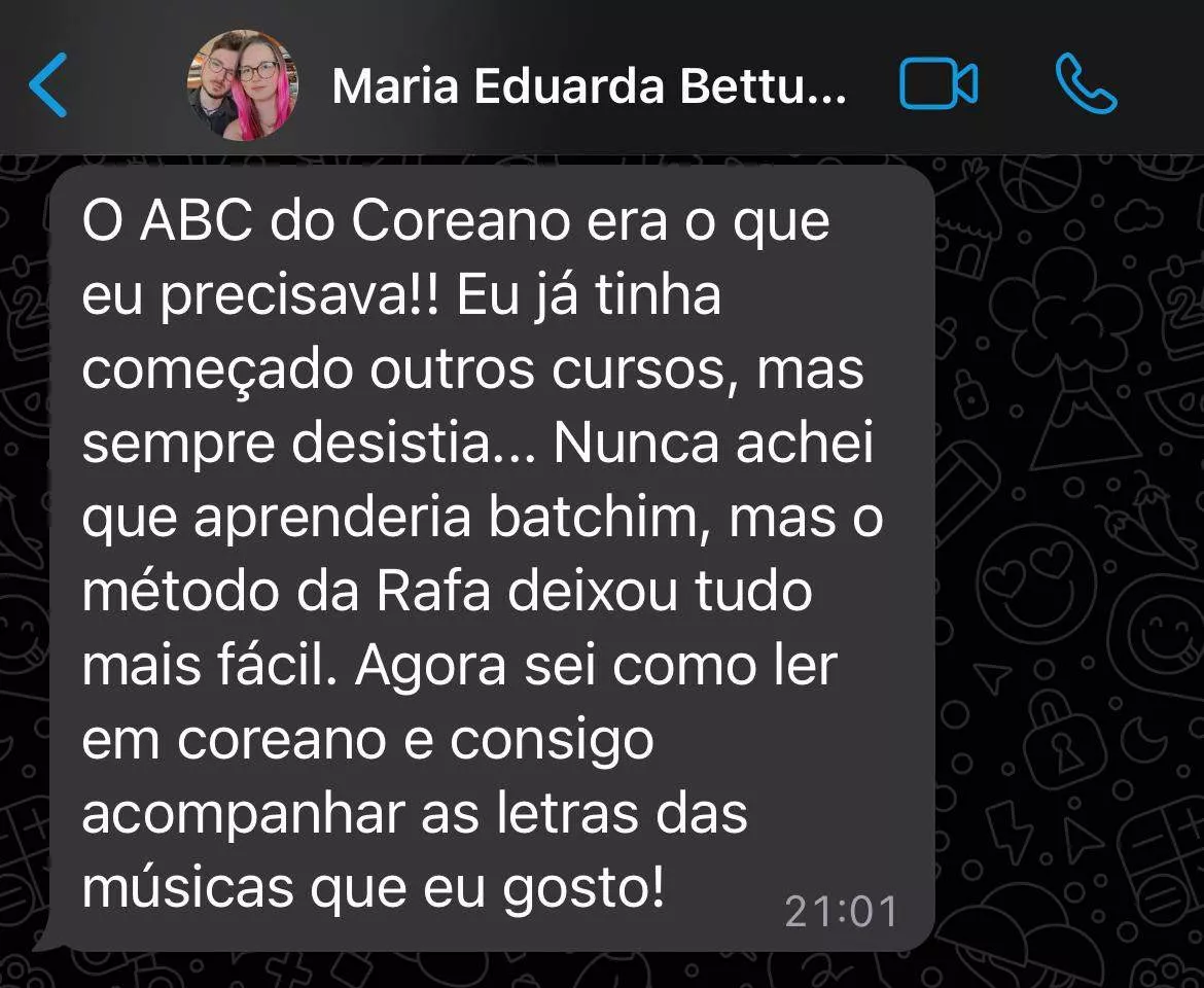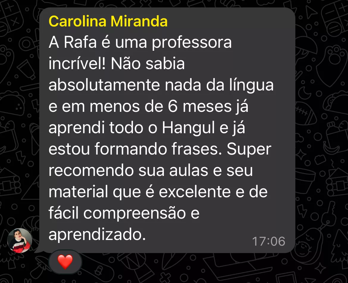 Após enfrentar dificuldades para aprender o Hangul no início da minha jornada, desenvolvi um método simples e intuitivo para ajudar outros brasileiros a darem seus primeiros passos no coreano, sem frustração.